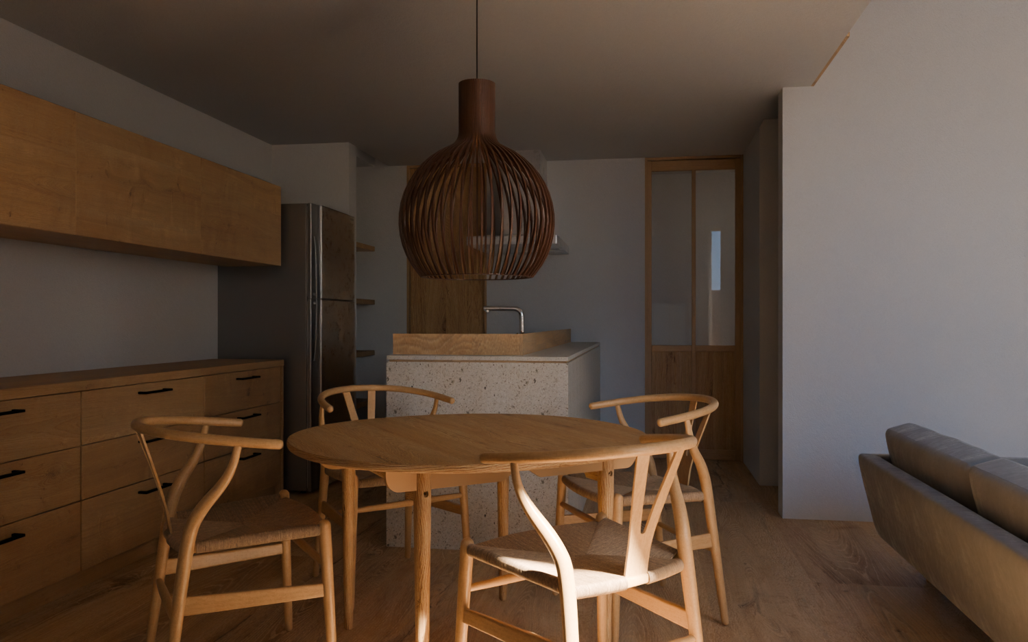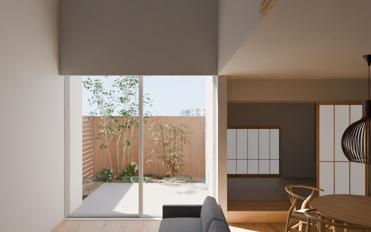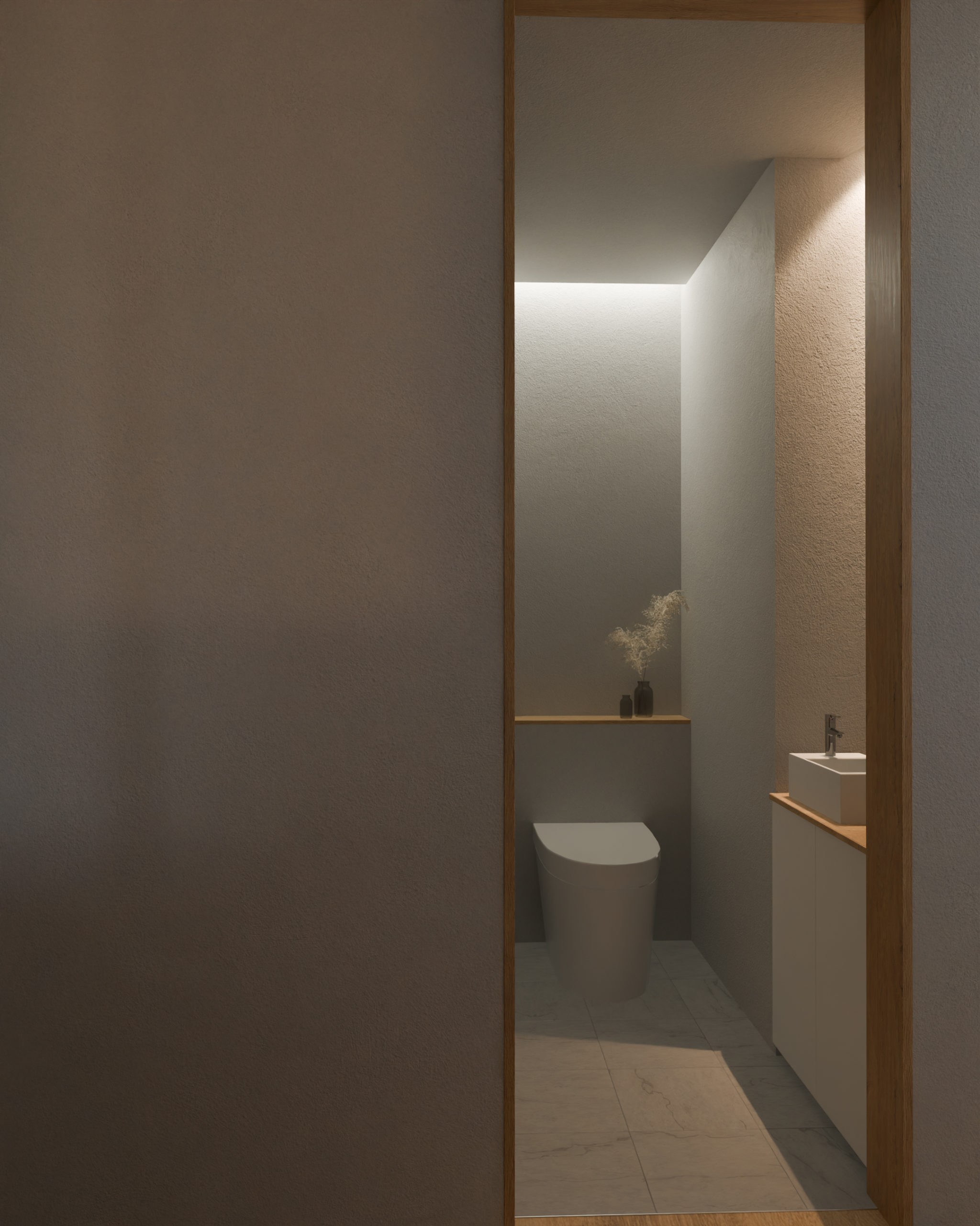 LDKの家具上間接照明はDLを減らし、ペンダントライトを際立たせ、寝室では眩しさを軽減し重心を下に配置することで落ち着いた雰囲気に。水回りでは日々の生活に特別感をプラス。